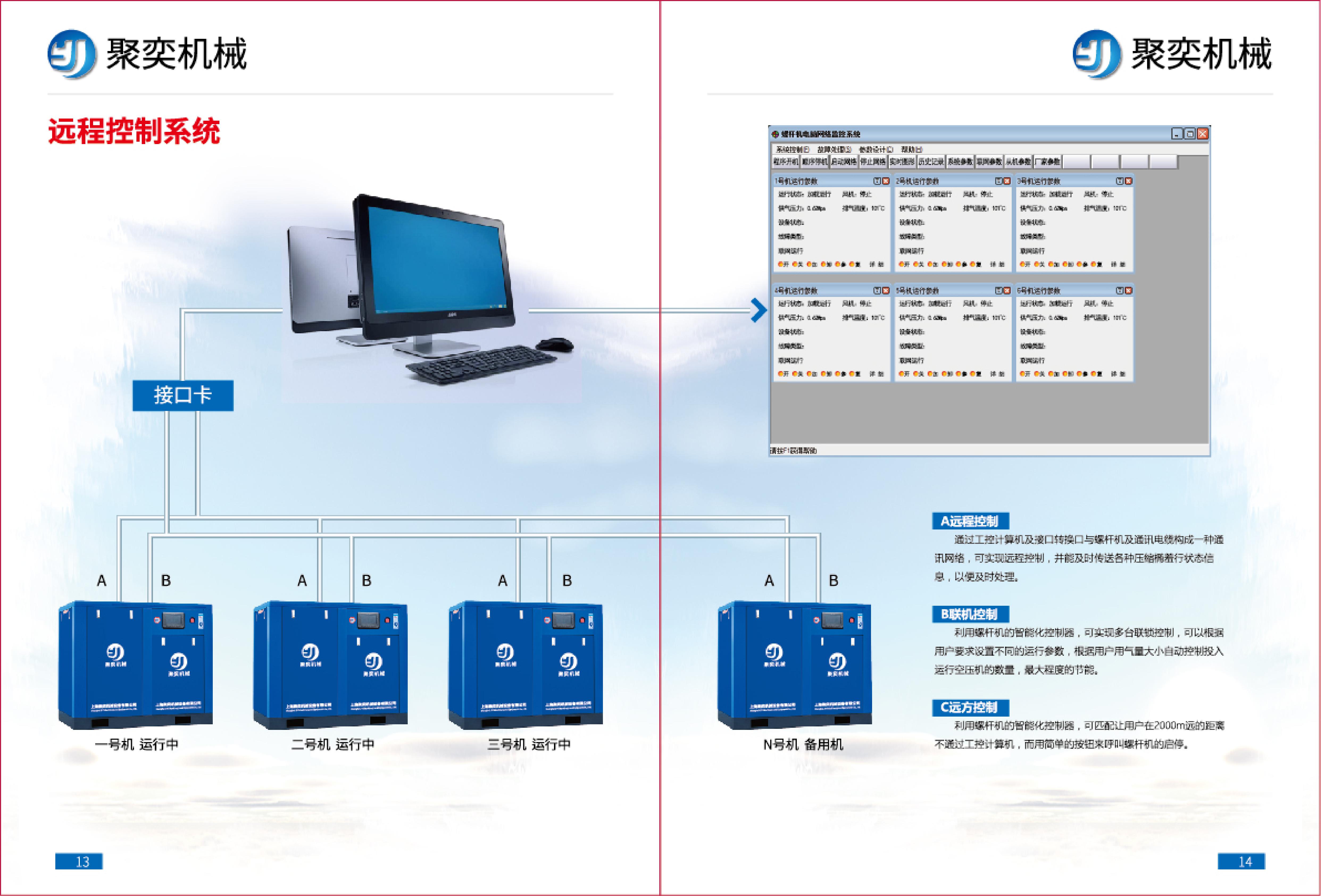 聚奕永磁變頻空壓機利用變頻器的無極調速特點,通過控制器或變頻器內部的PID調節器,平緩啟動,如遇用氣量波動比較大的工況,可以快速調節響應。